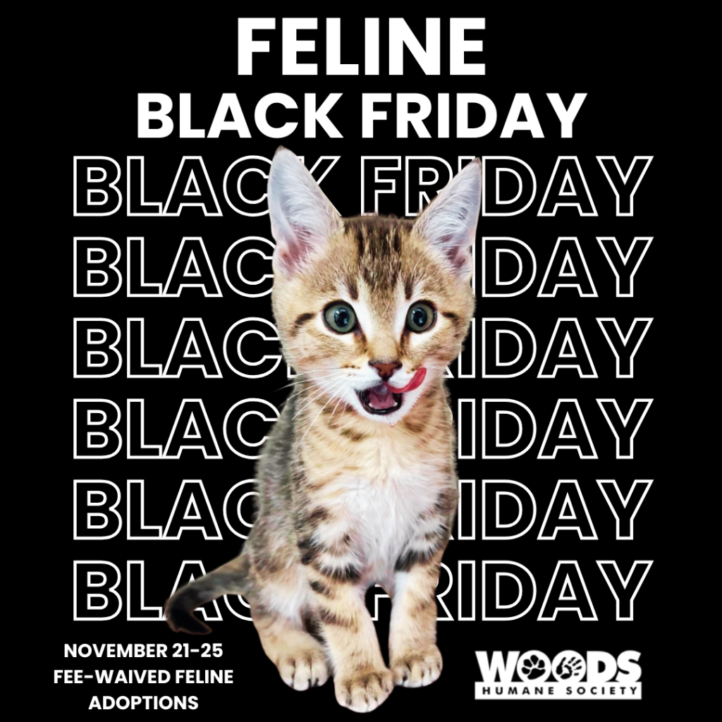 Vying for the cutest Black Friday sale this season, Woods Humane Society announces its Feline Black Friday adoption promotion, which will waive adoption fees for cats and kittens from Friday, November 21 through Tuesday, November 25, 2025.
