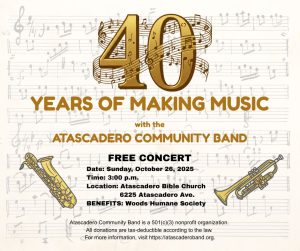 The Atascadero Community Band has been bringing together musicians from across the county since 1985, sharing their love of music with the community. This year, they’re celebrating their 40th anniversary with a special concert, and we’re excited to share that this event benefits Woods Humane Society!