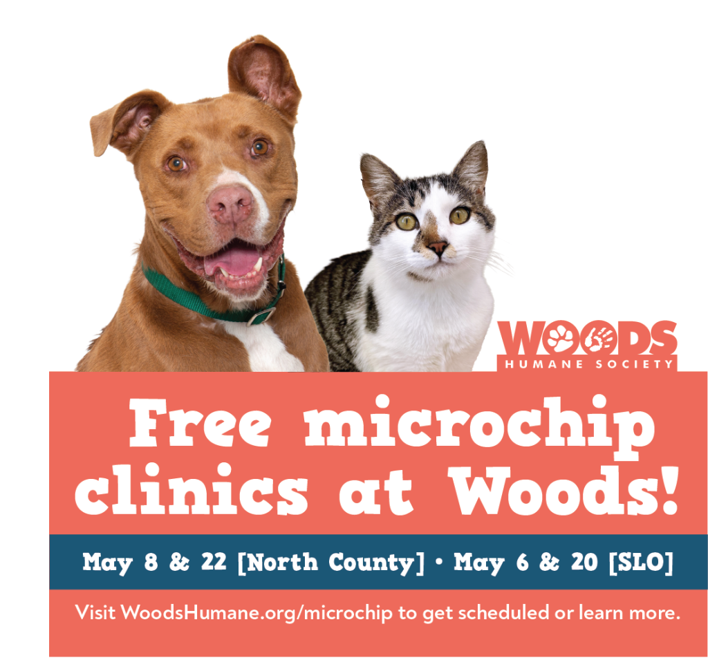 These simple devices make it easier to reunite with your pets if they ever get lost. Our North County location will host microchip clinics on May 8 and 22, and our SLO location will host clinics on May 6 and 20, from 2-4 p.m.