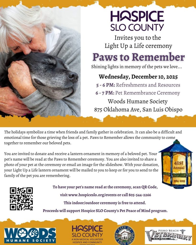 It’s almost time for Yappy Hour! Come to two special, local Yappy Hour events benefiting Woods Humane Society from 3-5 p.m. on December 11 at Mr. Rick’s in Avila, and on December 17 at Wooly’s in Pismo! Enjoy some Tito's Handmade Vodka cocktails and raise your glass for dogs like Spirit, available for adoption at Woods Humane Society!