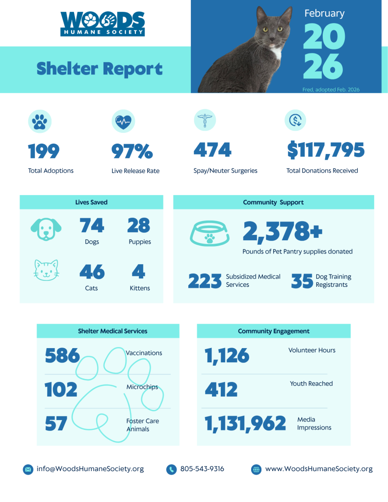 In February, Woods Humane Society and its supporters continued to make a powerful difference for animals and the people who love them.
